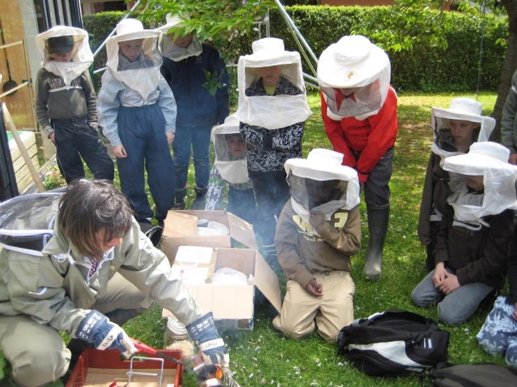 Honningbierne giver gode muligheder for at bruges aktivt i undervisningen, fordi man til dels kan planlægge aktiviteterne, så de passer til skoleåret. I foråret kan man ved et besøg i et bistade se den myldrende aktivitet i stadet, de forskellige stadier i insekters udvikling og diskutere arbejdsdelingen hos sociale insekter. Man kan opleve bier i blomster og se pollenindsamling.