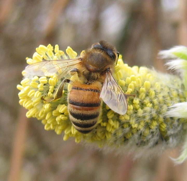 Der er både nektar og pollen at finde i det tidlige forårs hanlige pileknopper. Foto: Johannes Sørensen