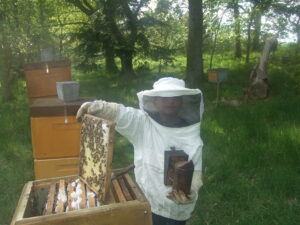 Sidst på sommeren kan biavleren høste årets sidste honning. Biavleren tager tavlerne med honning med hjem, hvor han kan slynge honningen ud af tavlerne.