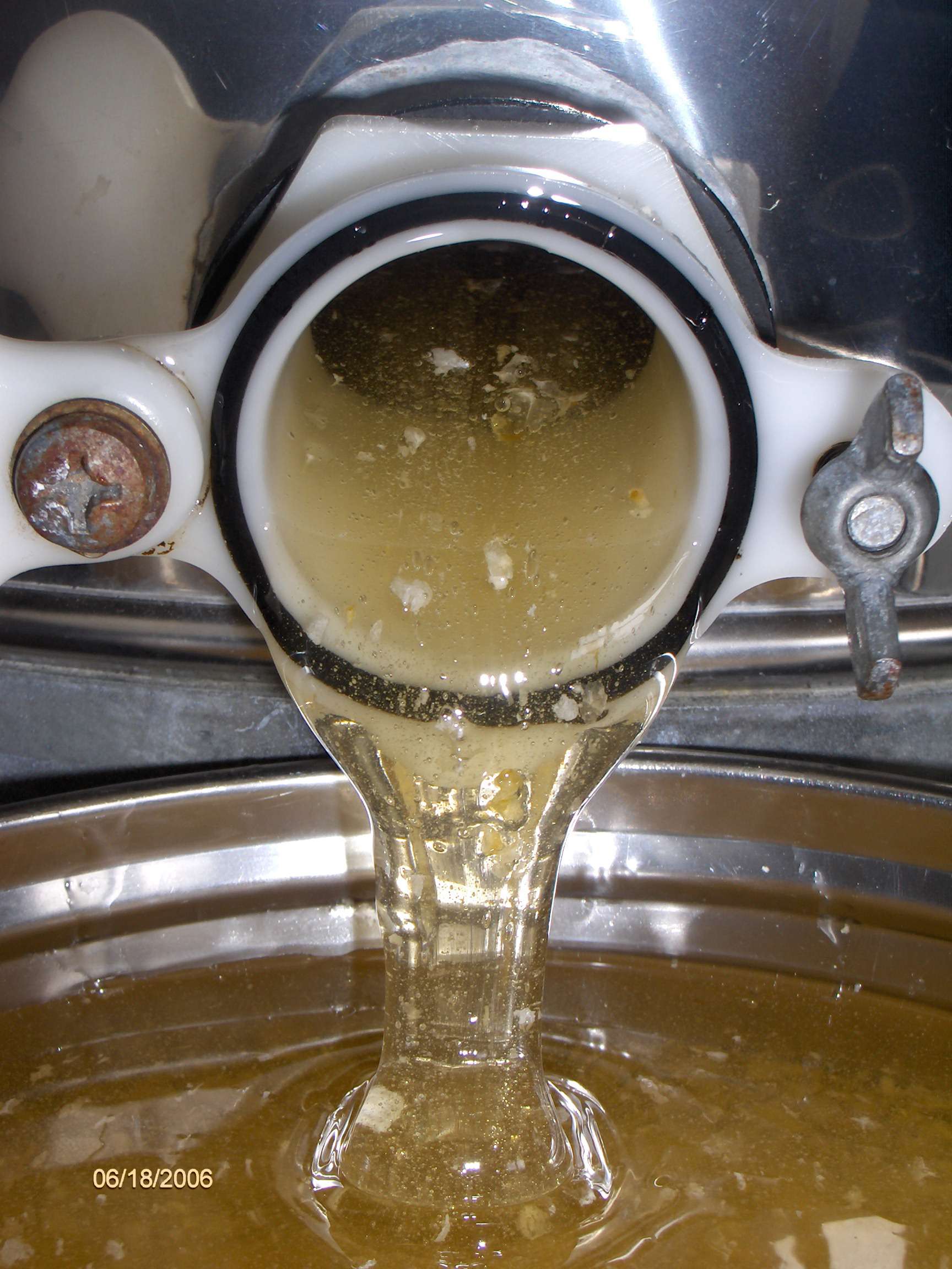 Når honningen løber ud af slyngen, kommer det ned i en spand. Men inden det kommer i spanden, skal det løbe igennem en si. Sien gør, at små stykker voks bliver fjernet fra honningen.