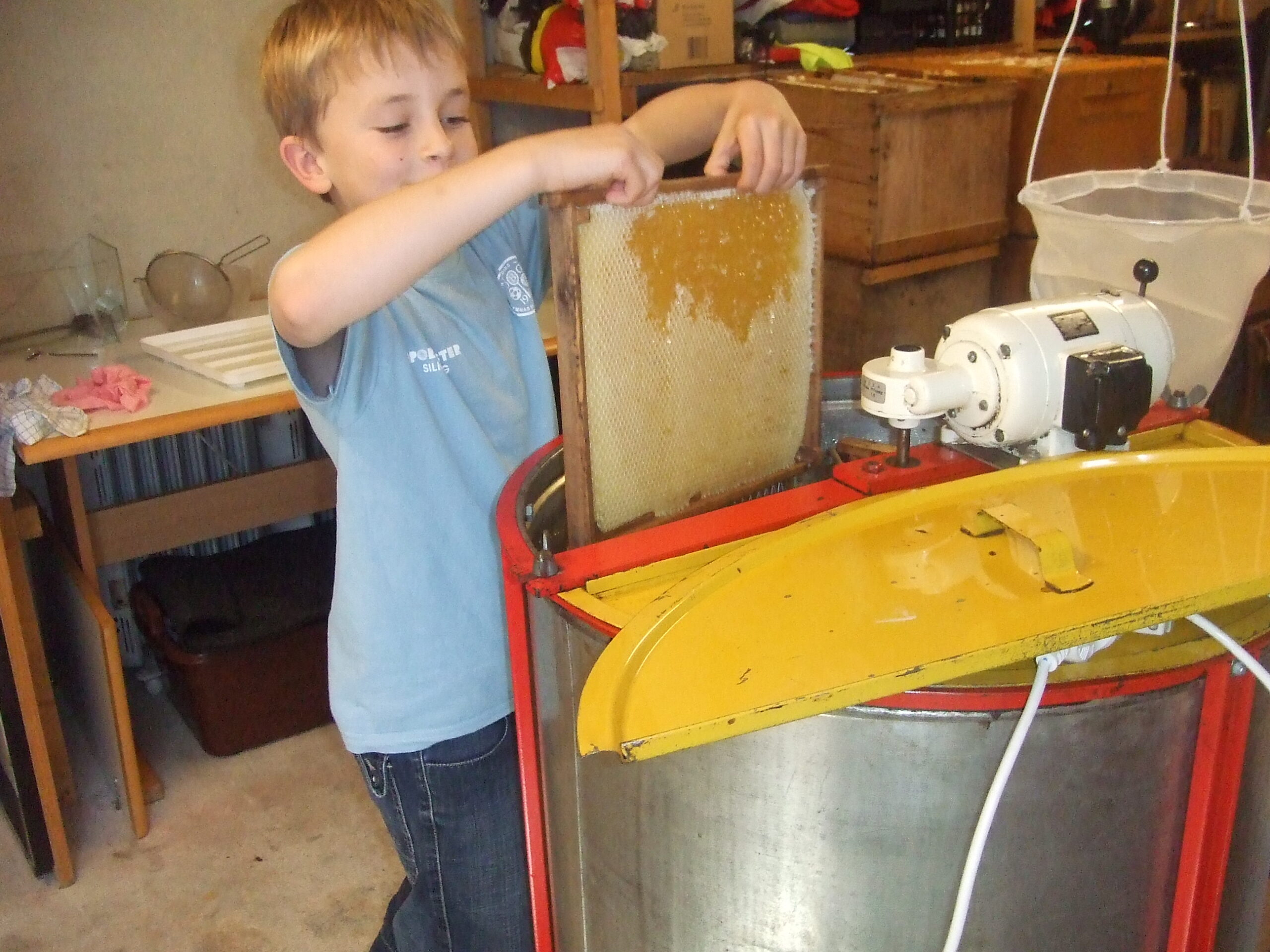 Når biavleren kommer hjem med honningtavlerne, skal vokslågene over honningen først fjernes. Ellers kan honningen ikke komme ud af tavlen. Man bruger er en speciel gaffel til at tage lågene af med. Det kan være lidt svært, de første gange man prøver. Men når du har prøvet det nogle gange, er det ikke så svært.
